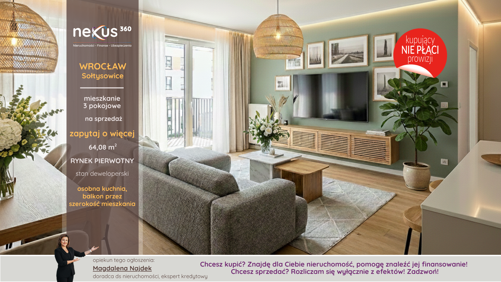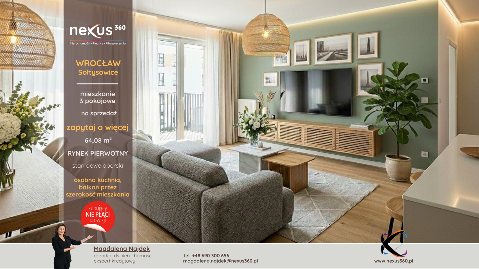 Szukasz przestronnego, wygodnego mieszkania dla rodziny w spokojnej, dobrze skomunikowanej części Wrocławia? To 3‑pokojowe mieszkanie o powierzchni 64,08 m² z oddzielną, widną kuchenią i bardzo ustawnymi pokojami może być idealne.