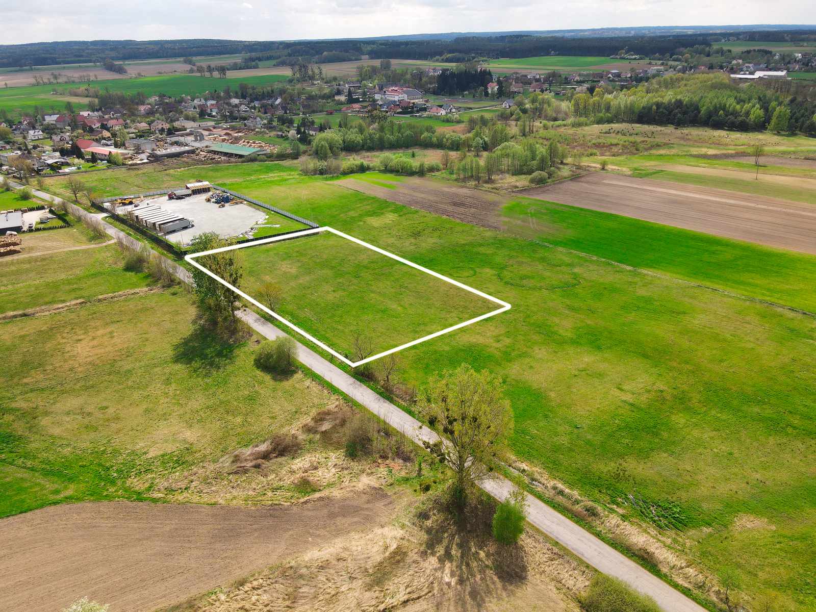 Działka płaska, położona bezpośrednio przy głównej drodze. Zgodnie z zagospodarowaniem posiada status działki przemysłowej.