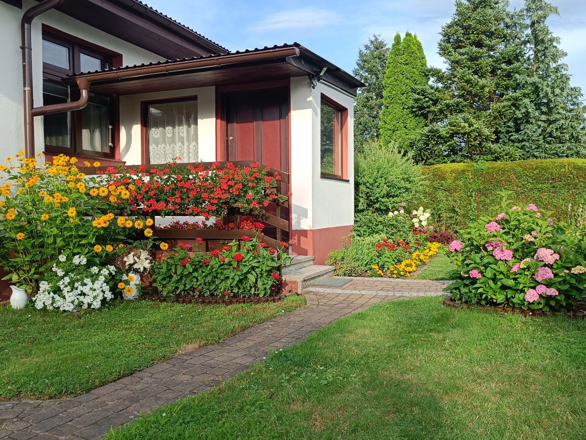 - Wokół nieruchomości zieleń: kwiaty, krzewy i owoce